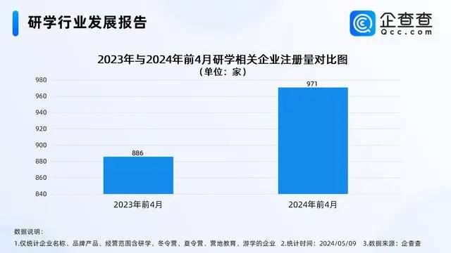 企查查数据显示,截至目前,今年已注册1000家研学相关企业,其中前4月注册量达971家,距去年同期增加85家。